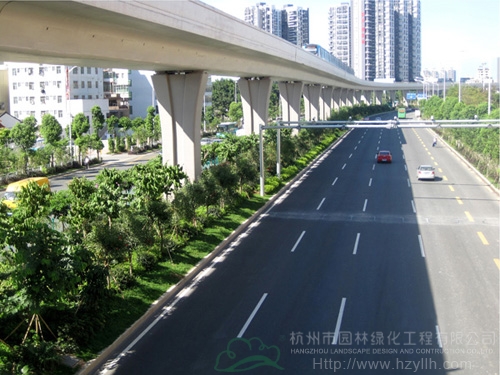 該工程最大的特色和亮點(diǎn)為:“以人為本,尊重自然”、“ 處處有綠葉,無處不飛花”等自然生態(tài)的設(shè)計(jì)理念貫穿始終;中央綠化帶位于高架橋下,長(zhǎng)勢(shì)茂盛的各類植物形成一條繽紛絢麗的彩帶擁簇著高架橋段,使整條橋段與綠化景觀有機(jī)融合。2012年,該工程榮獲中國風(fēng)景園林學(xué)會(huì)“優(yōu)秀園林綠化工程金獎(jiǎng)”。