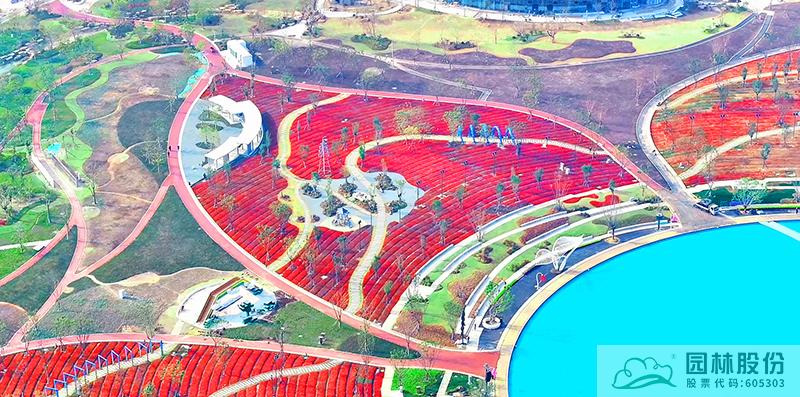 位于項目中心的天空花湖占地面積約27萬平方米,以水環(huán)、外環(huán)及花瓣環(huán)作為構成花海的主要結構體系,溪水環(huán)繞花海外圍形成花溪景觀。水環(huán):即天空之鏡,由一片圓形淺水水面作為花海的核心區(qū)域,天水一色,行人在其上猶如在大型的鏡面游走。花瓣環(huán):作為花海的主要元素“花瓣”,以有“英雄花”之稱的火星花作為主要片植品種,同時采用多種觀賞性花卉,如紫絨鼠尾草、矮生馬鞭草、郁金香、三角梅、粉黛亂子草等花帶打造充滿活力的花海景觀。外環(huán):圍繞“飄落的花瓣”設計主題甄選花卉品種,采用相同花期的紅粉色為主的多年生花卉片植方式,渲染烘托中心花海的熱烈氣氛,以綠色草坪作為襯托花海的底色,引導游人近距離打卡觀賞。